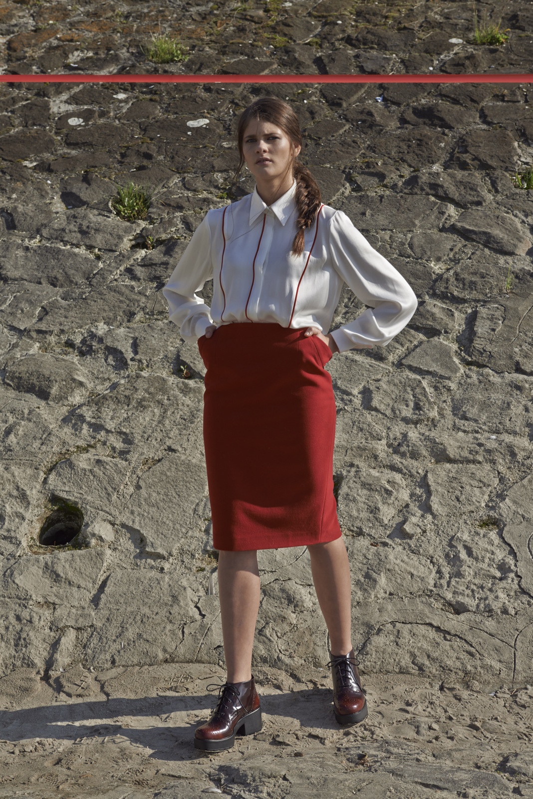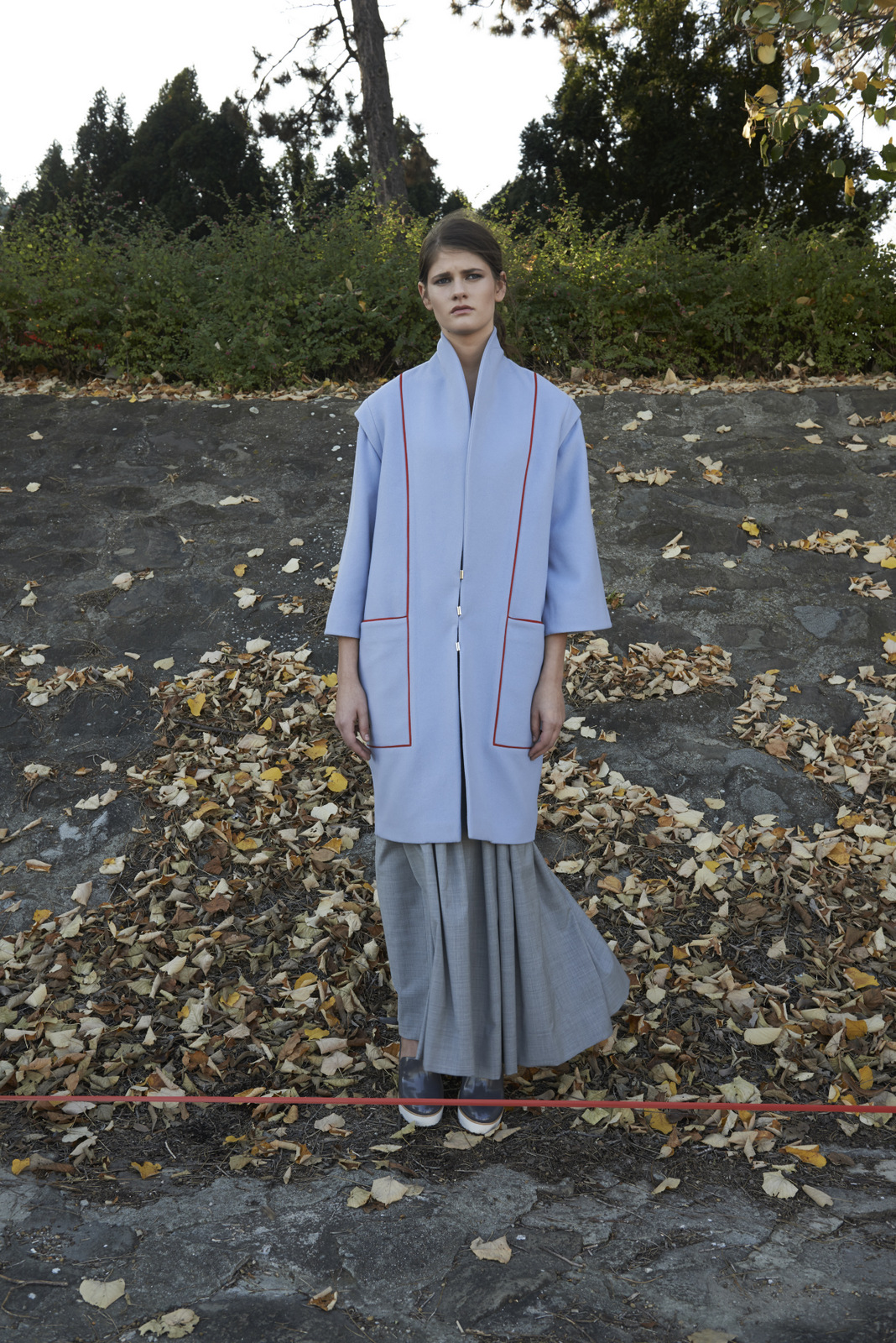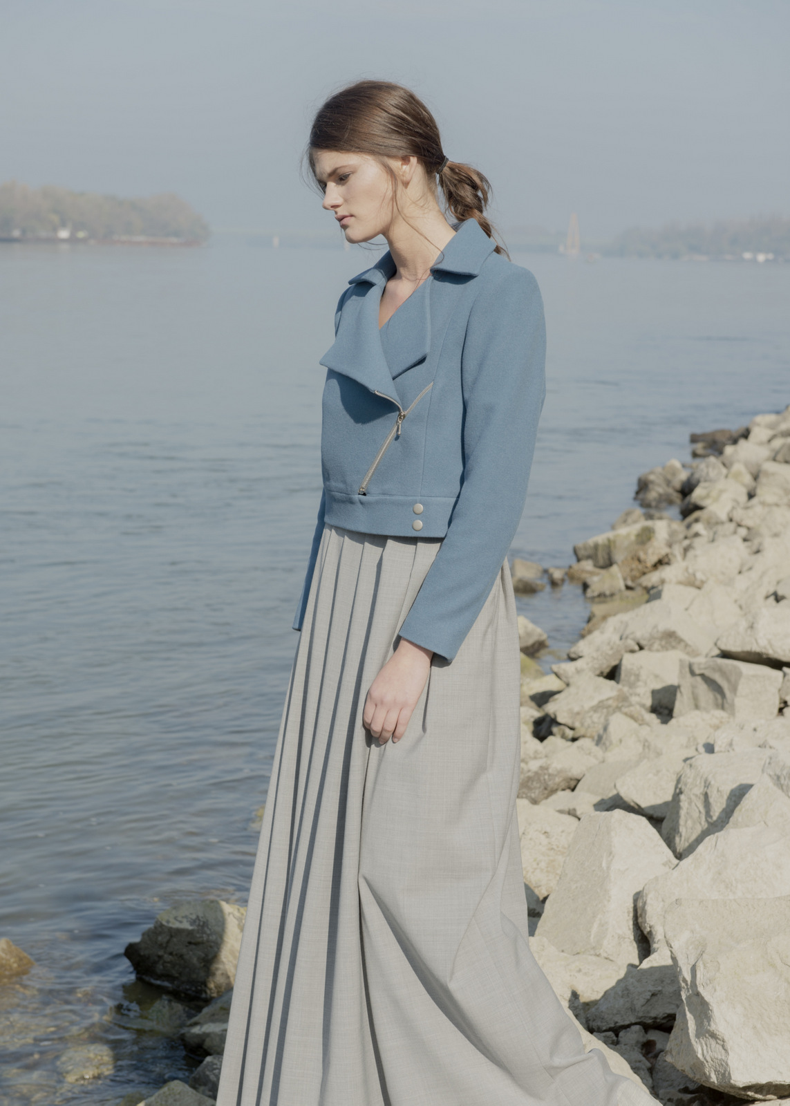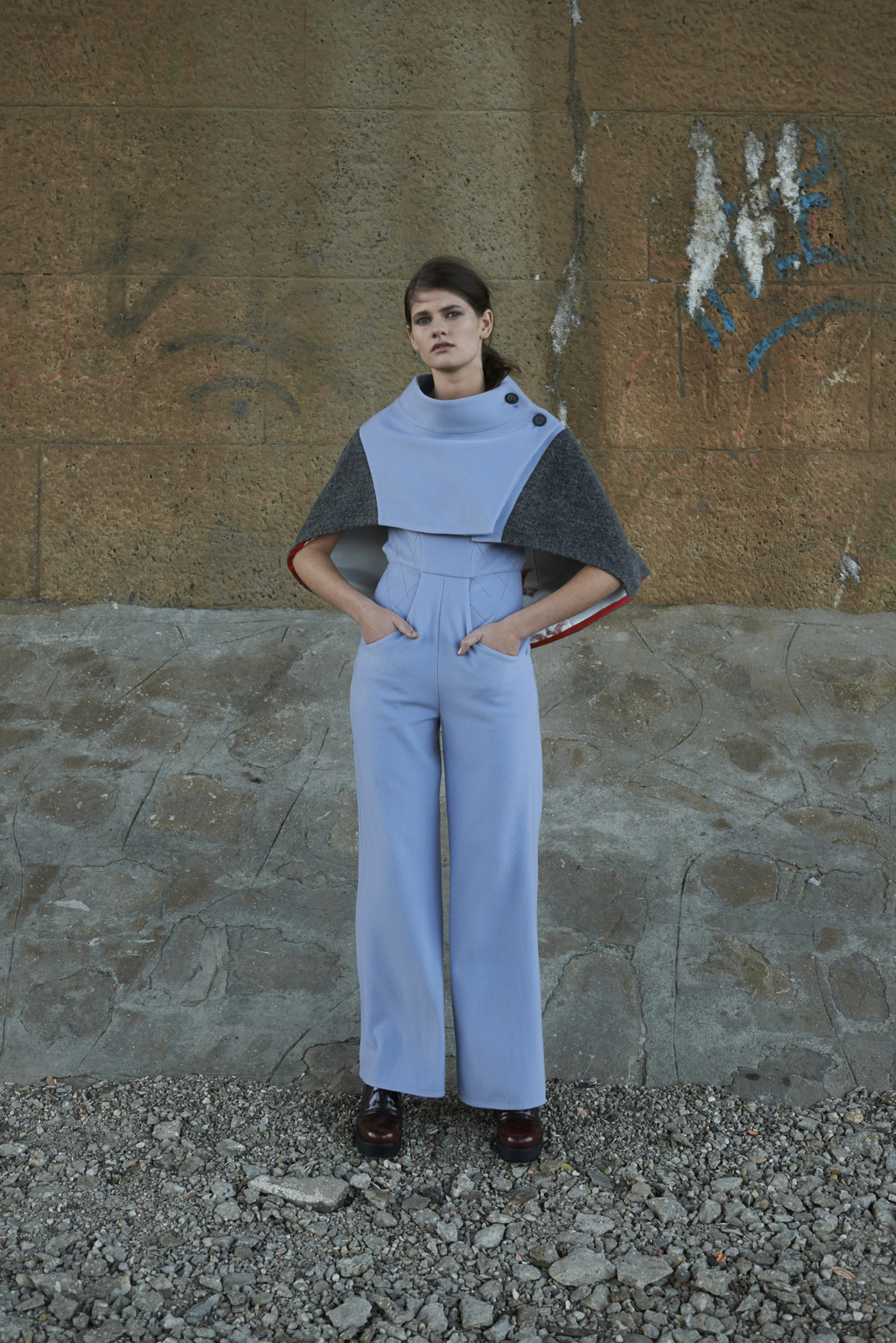 The DoraD Autumn/Winter collection was inspired by the frosty, chilly highlands and also by Rothko's paintings and his color blocking technique. Grey and blue shades, and a hint of red color characterize the pieces. The collection includes the essentials of an energetic and sophisticated woman's wardrobe: the slim fit blazer, the variable pencil skirt, the artistic wool coat, the flowing silk blouse, the simple shift dress, but also a sporty maxi skirt, a jumpsuit and a cape.