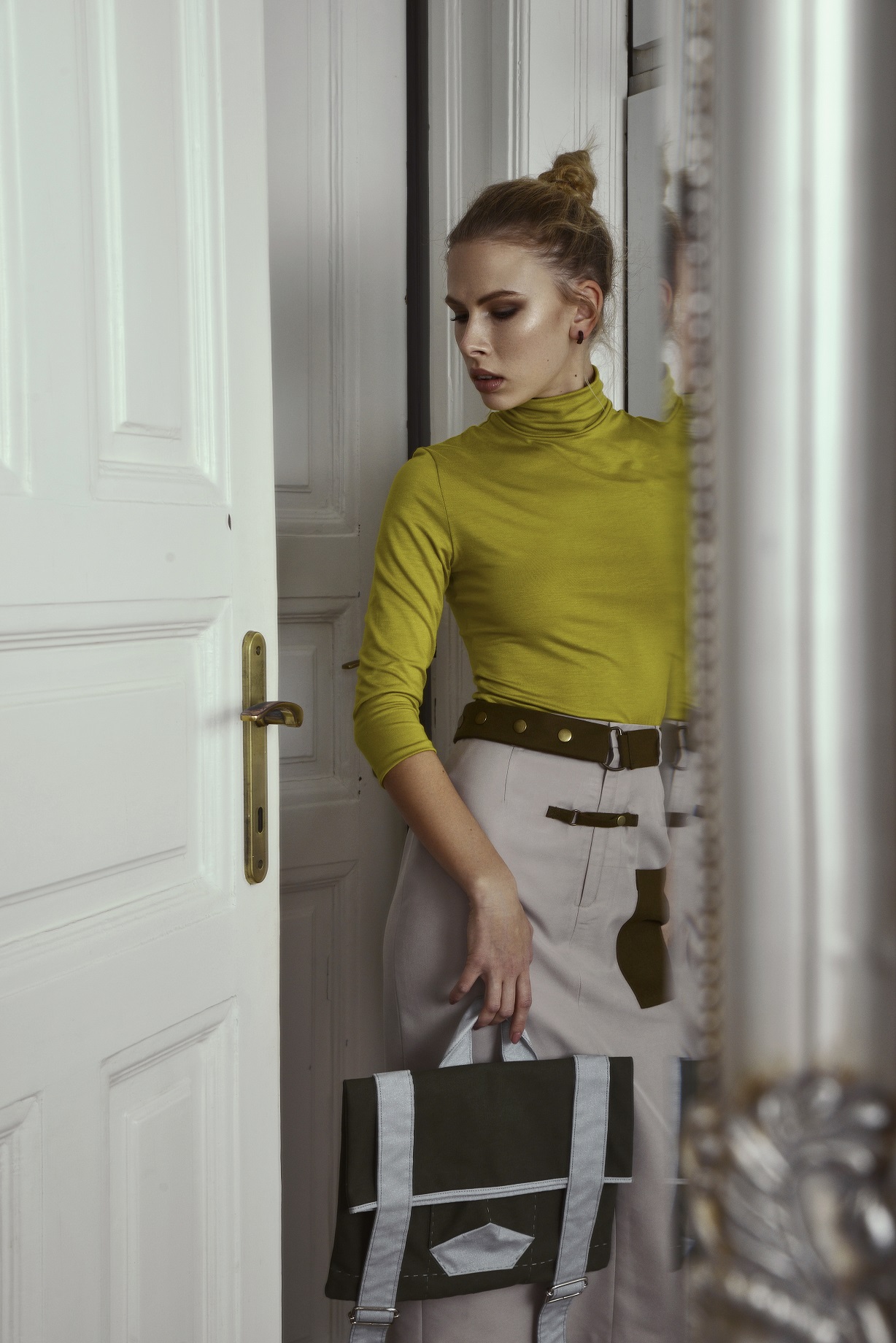A kollekció kiegészítőit a MOME-n diplomázott Frányó Borbála tervezte. Táskái elkészítésénél az egyszerűségre törekedett, a zsebek geometrikus mintázata markánk hatású, a szabás és a tűzések mind izgalmas játékosságot kölcsönöznek a ruháknak, melyekkel együtt harmonikus kollekciót képeznek.