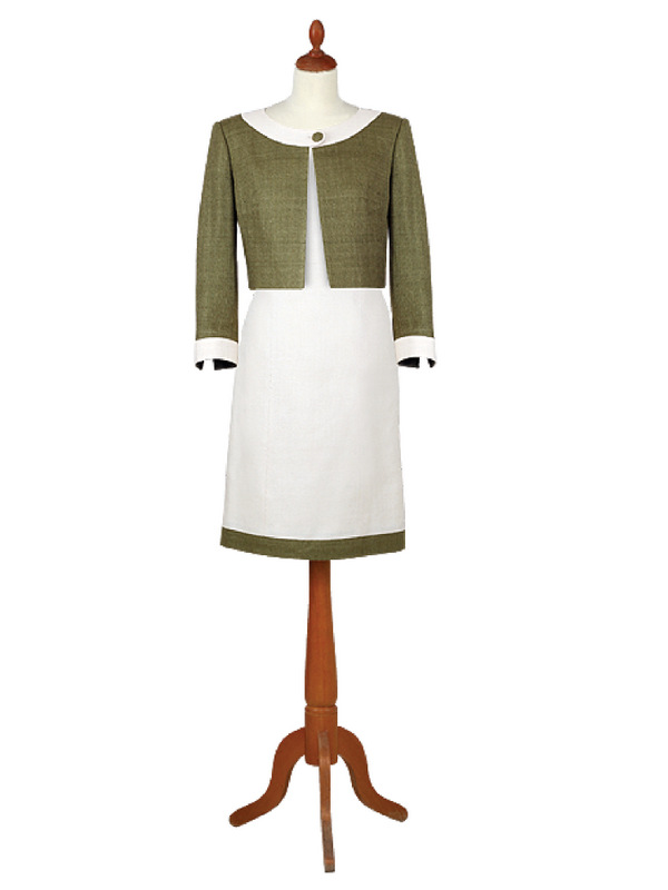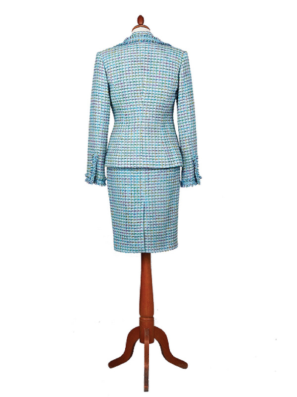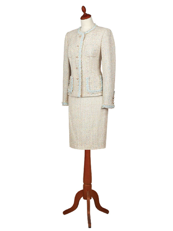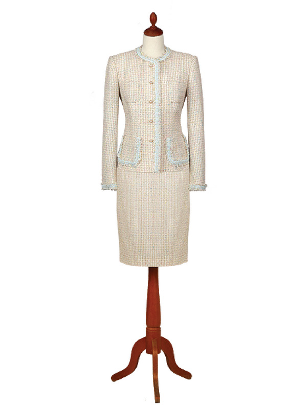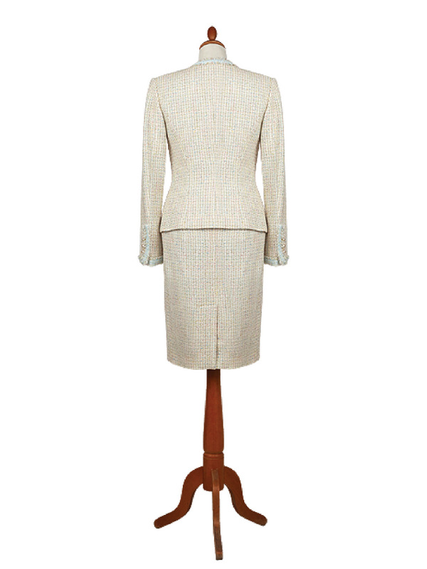 Gyapjú bouclé és selyem kabát, szoknya