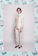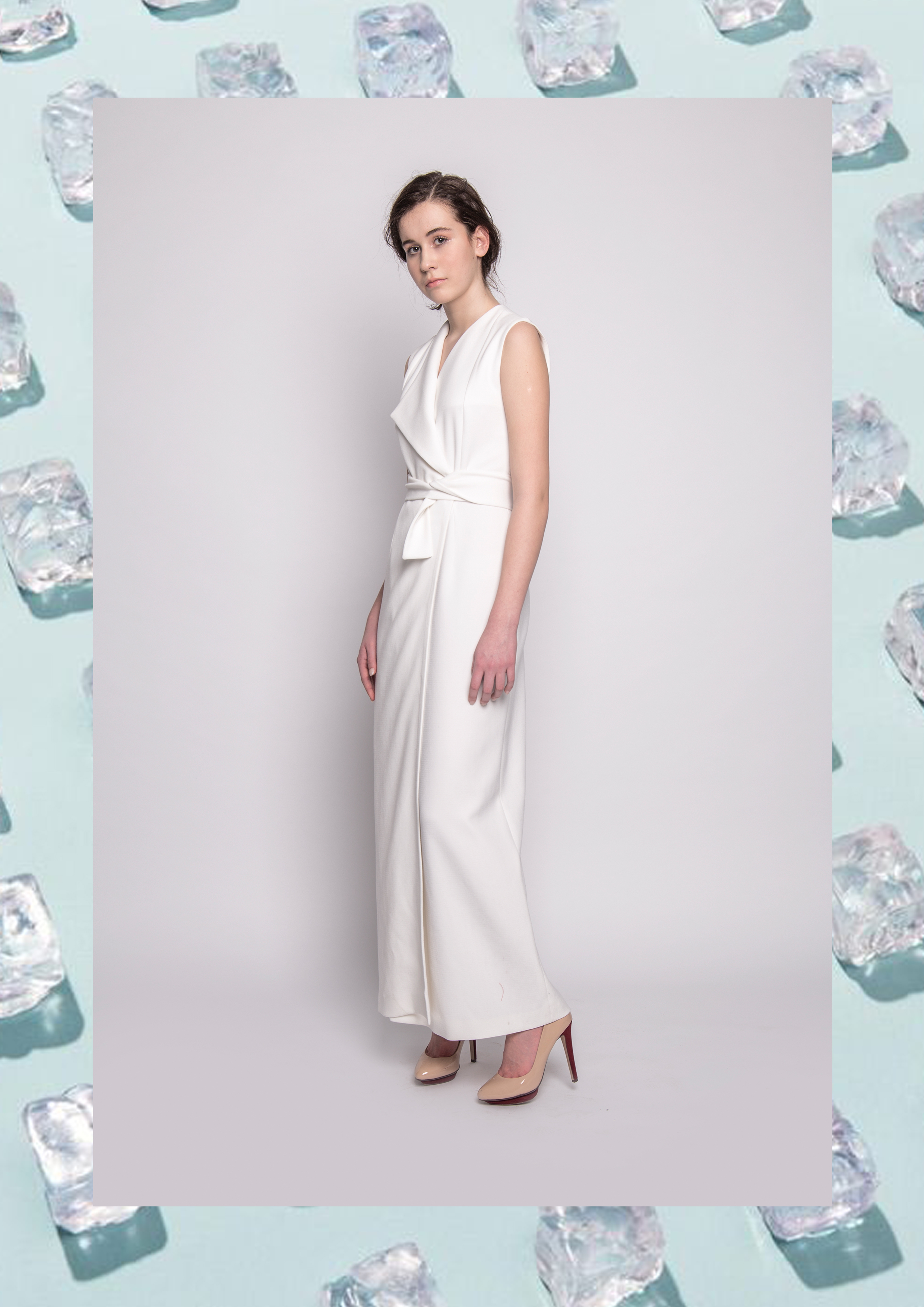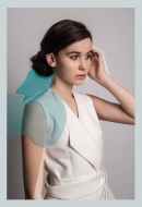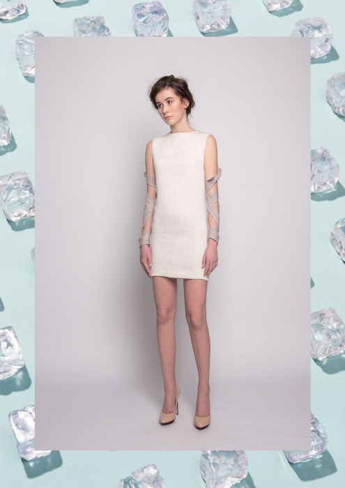 The silouettes of the pieces was designed by the form of the melting ice sheets. According to the autumn-winter season, soft, knitted pieces, buckles and belts play a determinant role in the designes. The greyish white, the pale blue, the powder pink and the rusty-brown pieces remind the arctic region’s and mountain’s atmosphere and colorpalette.