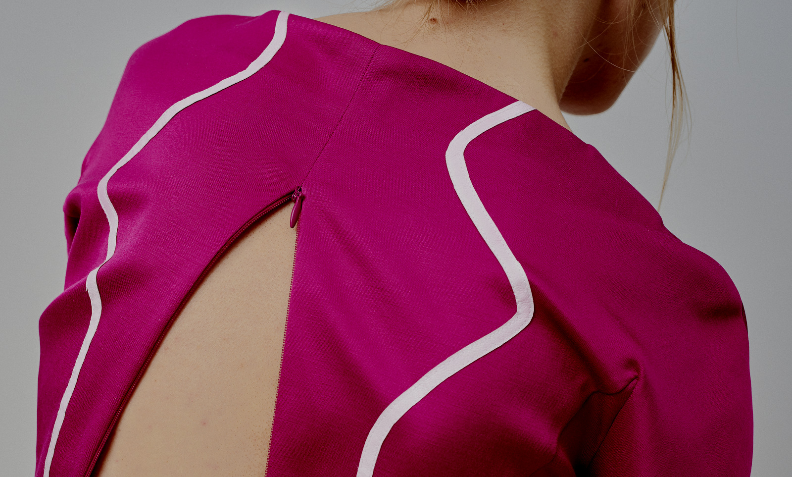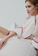 LBL's BarbaraH collection took inspiration from the spiritual and traditional world of India, the pleatings on the garments reflect on the Indian traditional costumes and architecture. The feminine, elegant, clear-out pieces are created from carefully selected, high quality fabrics and their characteristic colors are shades of white, grey and pastel colors, which are contrasted by the lively fuchsia.