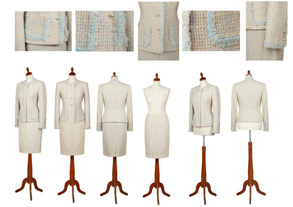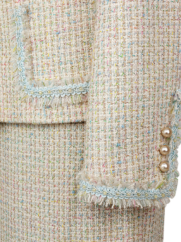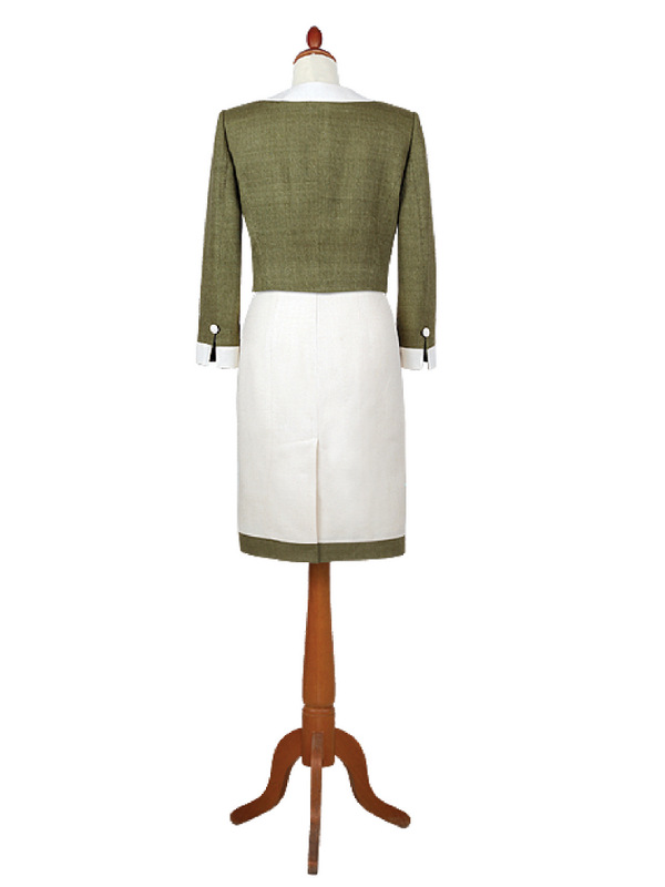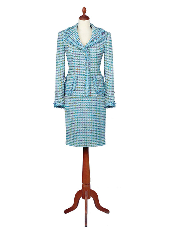 Gyapjú bouclé és selyem kabát, szoknya